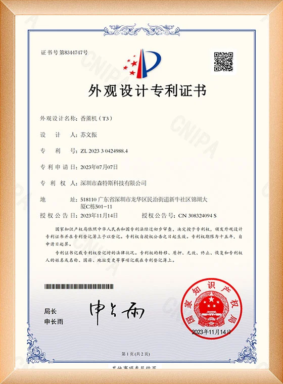 Perustamisensa alussa SCENTSEA piti T&K-investointeja erittäin tärkeänä. Uskomme vakaasti, että jatkuva innovaatio on yrityksen kilpailukyvyn ydin. Saimme yli 20 tuotepatenttiaaromihajottimetja nanokylmäsumutusteknologiamme on jo alan johtavalla tasolla.