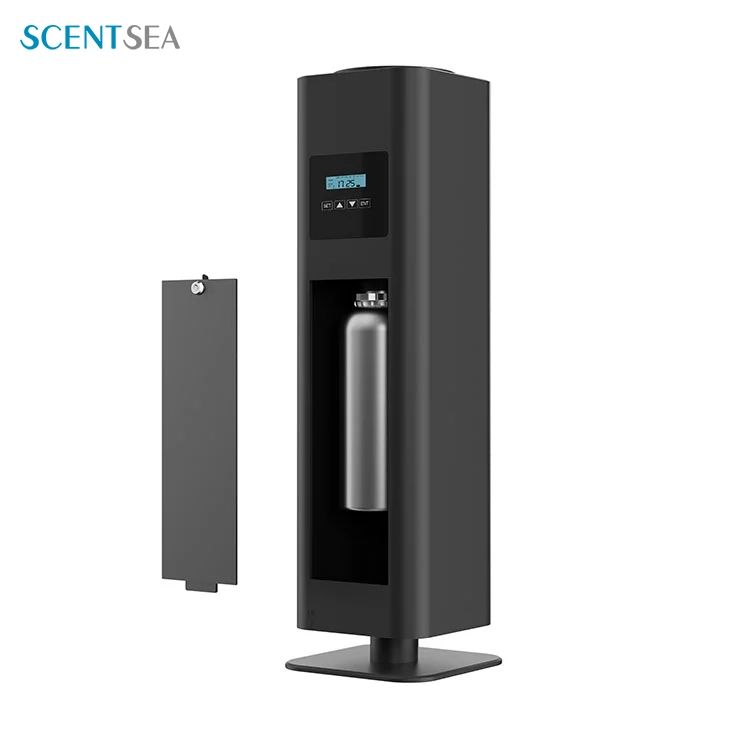 Tämä lattialla seisova ostoskeskuksen tuoksuhajotin käyttää Venturin kylmäsumutustekniikkaa hajusteöljyn sumuttamiseksi erittäin hienoksi kuivaksi sumuksi ilman lämmitystä tai veden lisäämistä.
