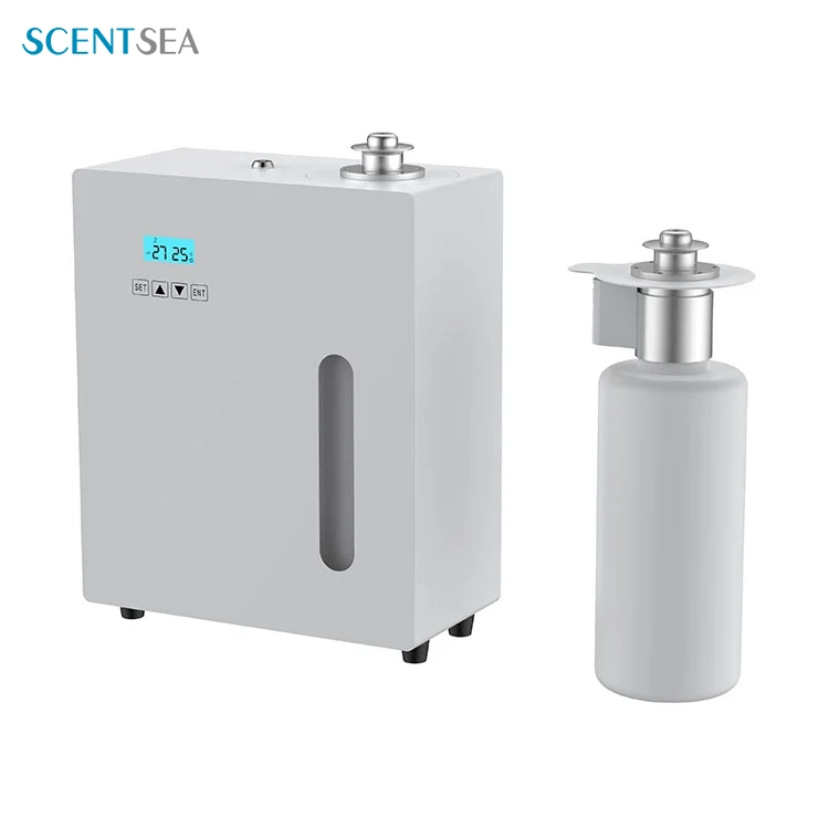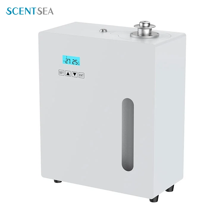 SCENTSEA Professional Hotel Air Aroma Diffuser on valmistettu tukevasta ja kestävästä metallimateriaalista, mikä pidentää huomattavasti tuotteen käyttöikää. Se on varustettu älykkäällä ohjelmoitavalla piirilevyllä, voit asettaa tuoksujakson ja työskentelyvälin vapaasti tarpeidesi mukaan. Professional Hotel Air Aroma Diffuser tukee erillisiä, seinäasennettuja ja LVI-liitäntöjä, jotka voivat täyttää eri projektien tarpeet.